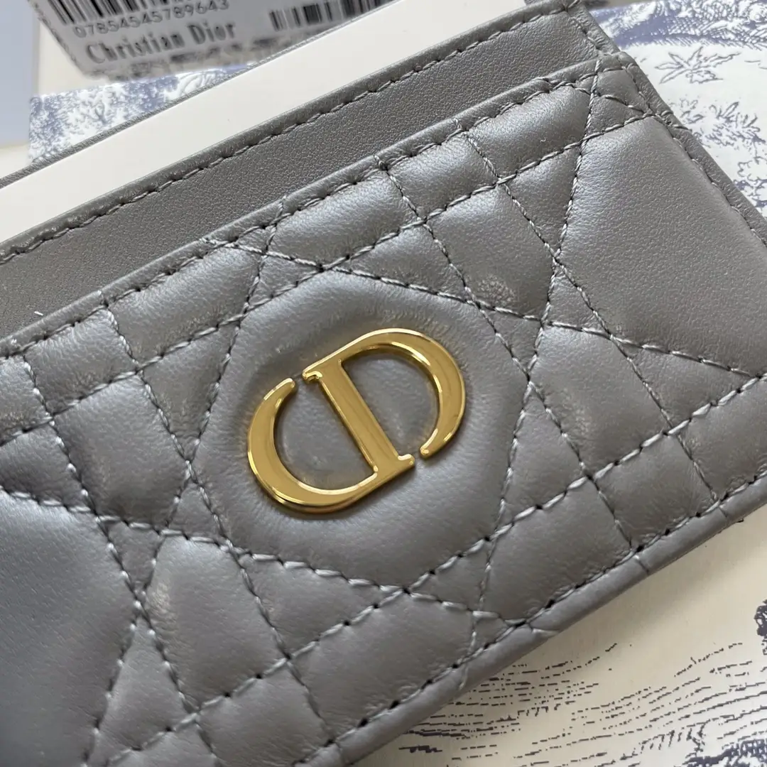 Carefully crafted in grey soft cowhide leather, adorned with rattan plaid stitching, and adorned with a CD logo on the front. Elegant and exquisite, with five card slots suitable for various occasions, it can be paired with other Dior Caro items.