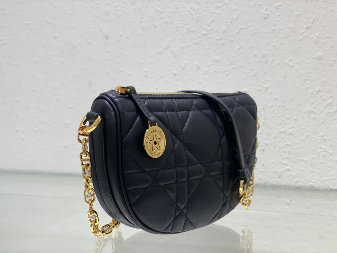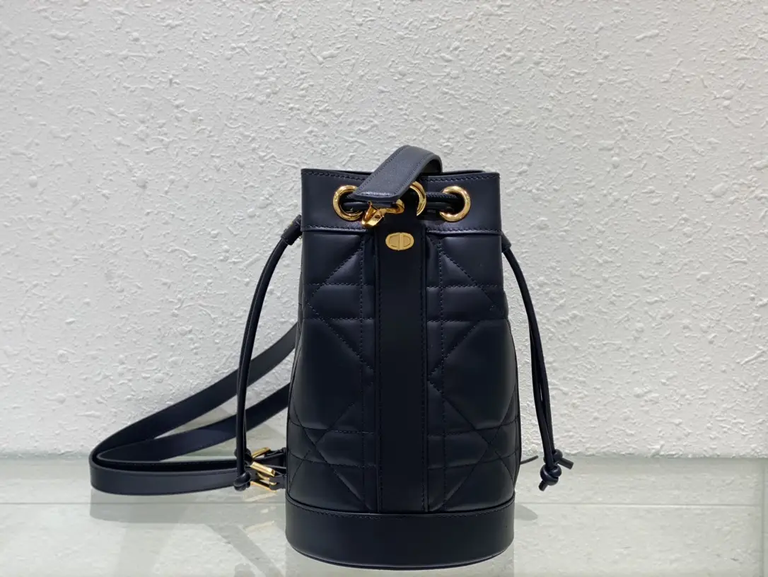 The column showcases a brilliant debut, redefining Dior’s modern and elegant classic logo. Crafted with black soft cowhide leather, it highlights the enlarged rattan grid pattern stitching, adorned with exquisite CD logo, and paired with drawstring opening and closing design, providing spacious interior space. Small style, practical in function, equipped with a detachable handle and versatile adjustable shoulder strap, with various carrying methods, can be carried by hand, shoulder, crossbody or double shoulder.