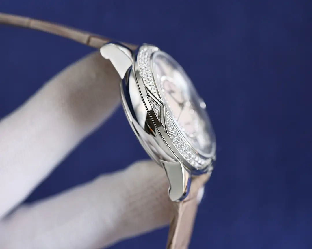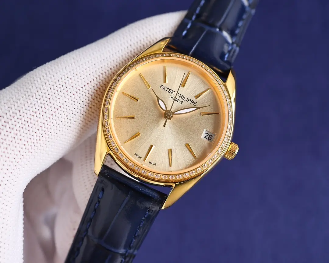 Versatile Goddess, Best Women’s Edition of the Year, Patek Philippe Upgraded V8 Fashion Women’s Watch Simple Three Needle Night Time Super Luminous Unique 3-Character Calendar Case with Unique Swarovski Diamond Trapezoidal Diamond. High end mother of pearl dial, from simple to beautiful, elegant and fresh, equipped with original imported fully automatic mechanical movement(