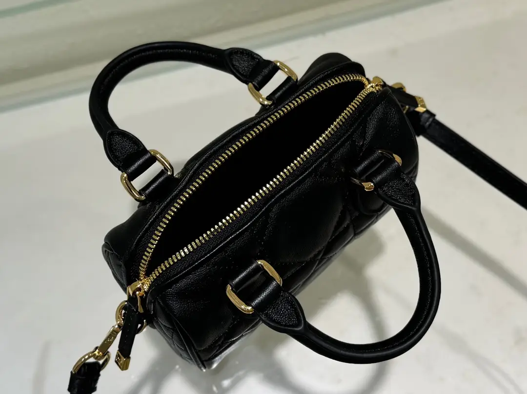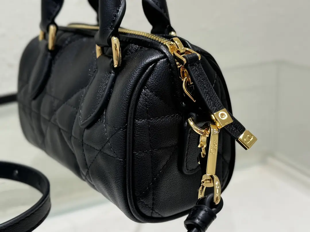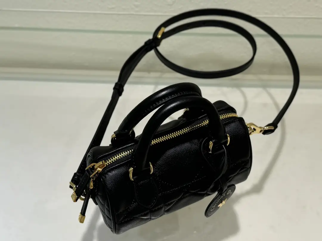 The new seasonal ready to wear collection, designed by Maria Grazia Chiuri, is elegant and fashionable. Crafted with black cowhide leather and adorned with a quilted effect and a large wicker pattern, showcasing Dior’s exquisite craftsmanship, the leather keybag is adorned with the Christian Dior Paris logo and embellished with golden stars, creating a unique look. The hanging key can open the zipper padlock, and the spacious compartment is equipped with an insert pocket and a zipper pocket, which can store various daily necessities. Paired with a leather top handle and adjustable, detachable shoulder straps, it can be carried by hand, slung over the shoulder, or crossbody, making it an ideal handbag for everyday styling.